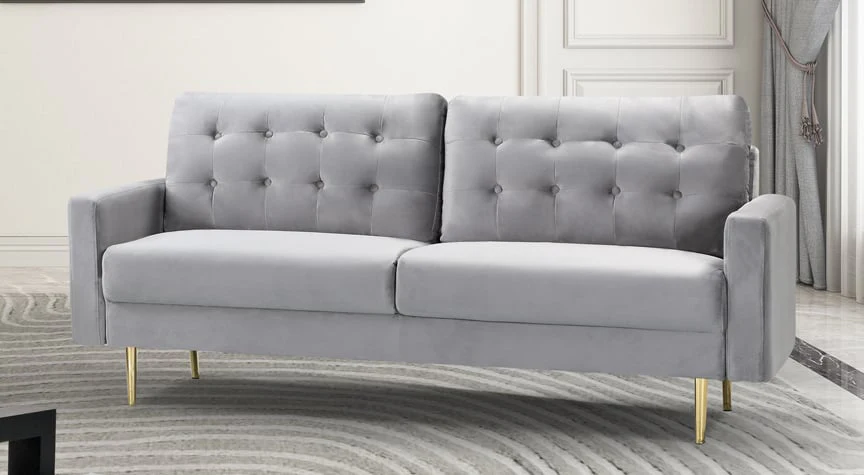 The Almeda is a mid-century style sofa with a modern twist. Covered in a rich velvet, the Almeda is the perfect combination of scandi design and modern materials. This unique sofa is finished with Brass effect tapered legs and a quilted backrest. Roomy yet compact the Almeda is the perfect way to transform your living room.