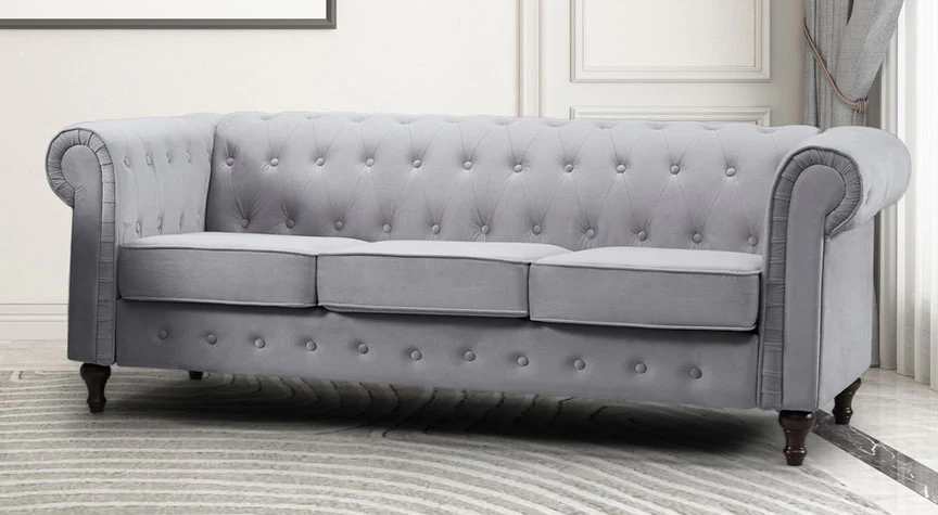 With its classic turned, dark-wooden legs and roll top arms, The Oakmere is a boasts the timeless Chesterfield design.
